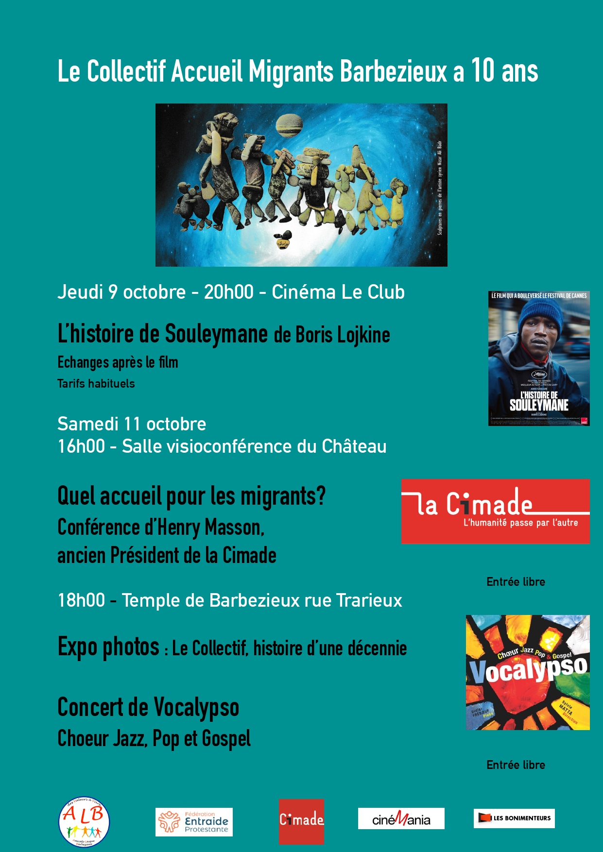 Pour fêter ses 10 ans, le Collectif Accueil Migrants de Barbezieux a le plaisir de vous inviter :